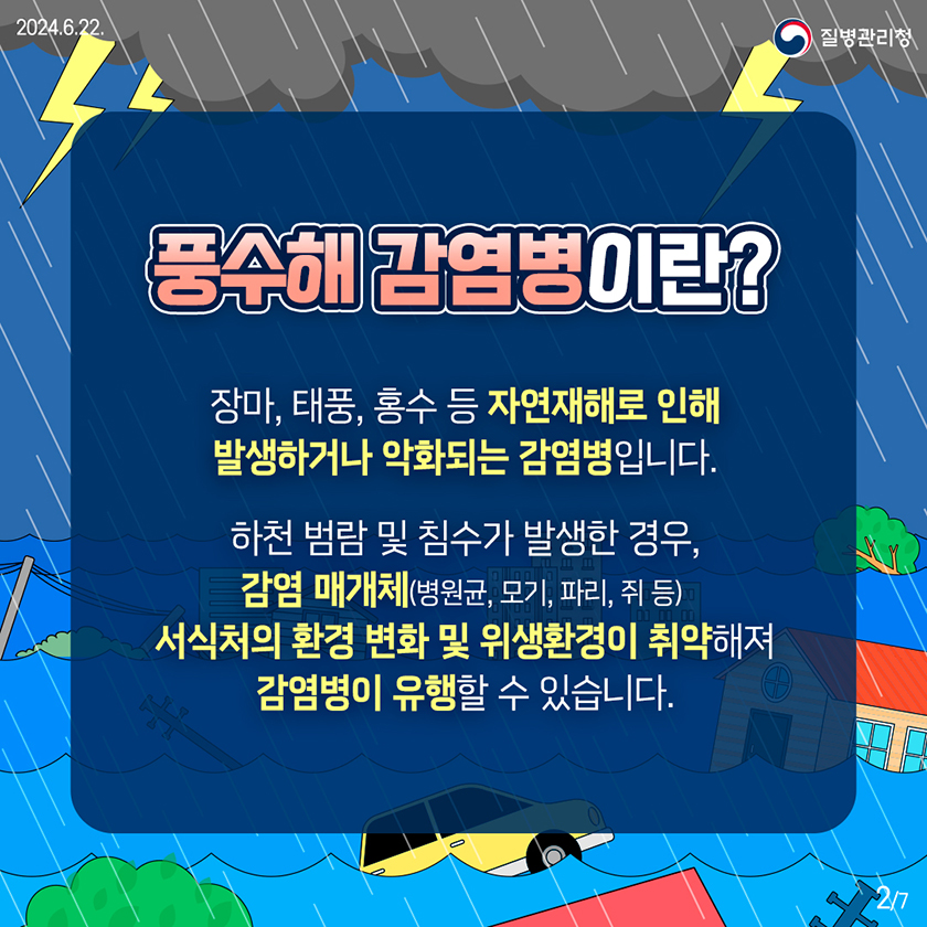 긴 장마 이후로는 풍수해 감염병의 우려가 있으니, 면역력이 떨어지지 않게 건강에 유의하시기를 바라겠습니다.