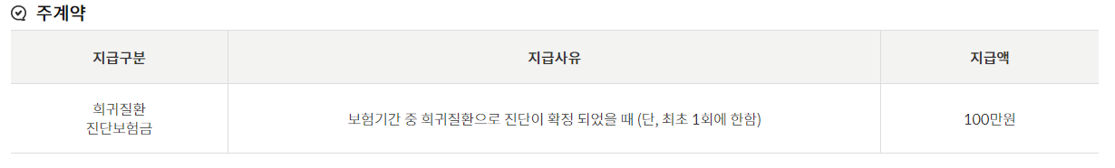 (주계약) 태아의 희귀질환 진단보험금 100만원 (최초 1회에 한함)