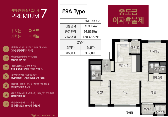 - 59㎡ 공급 금액 : 815,000,000원 ~ 832,000,000원
